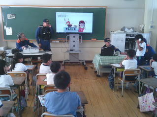 最初に教室で、 消防士の仕事について教えていただきました。 |