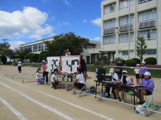 風が強い1日でしたが無事予行も終了しました。当日も天気が心配ですが、あと