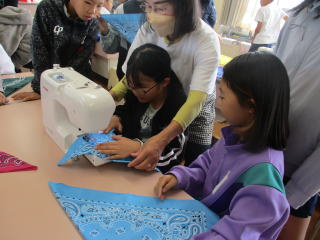 | ミシンボランティアさんが来校くださり、丁寧に教えていただきました。 | |