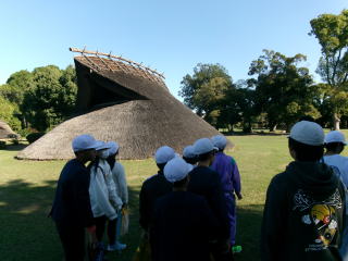| 社会科の学習で歴史を学ぶために6年生は稲美町のマイクロバスに乗って 播磨町にある県立考古学博物館へ見学に行きました。 |