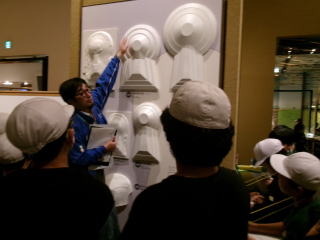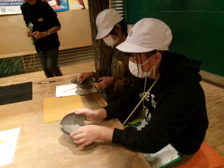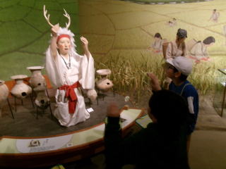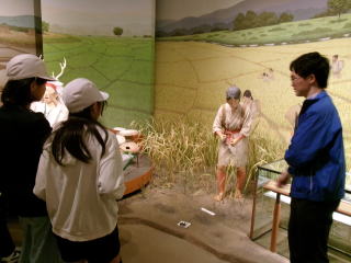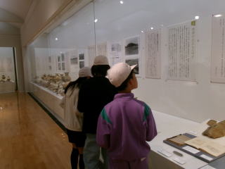| 縄文人や弥生人の生活の様子や 使われていた土器の移り変わりが展示されているのを しっかり聞いて、メモをしていたようです。 古代人の生活を体験できて彼らの智恵と工夫を感じることができたのではないでしょうか? 歴史の深みを感じ、興味関心をさらに感じてくれたことでしょう。 |