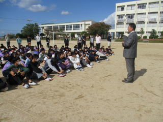 | 校長先生からのお話 「おはしもて」の確認をしました。 火事の件数や原因、対処方法についてお話してくださいました。 |