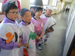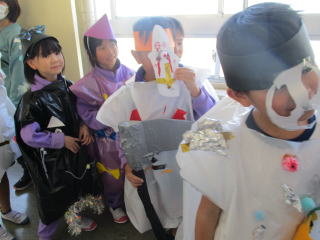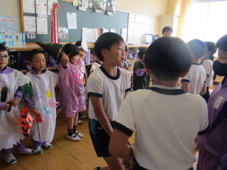 | たくさんの人に衣装を見てもらい,学校中を歩いた楽しい一日になりました。子どもたちの生き生きとした目がとても印象的で,最高のハロウィンパレードでした。 | |