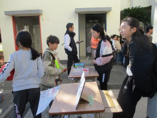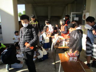 | 秋空の下、 まちづくりの会主催の「なんなんふれあいまつり」が本校体育館周辺で実施されました。 展示と舞台発表、バザーに加え、ゲームコーナーが体育館の外で行われました。 |