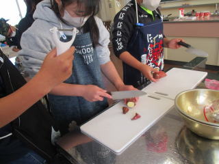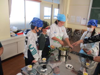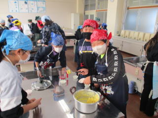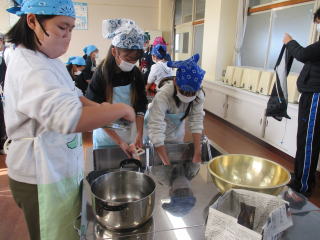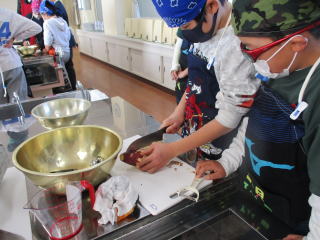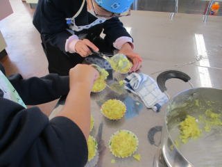 | 1,2時間目 5年生 調理実習「栗なしきんとん」 |