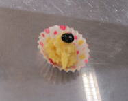 ![]() 上に黒豆をトッピングして栗なしきんとん 完成! |