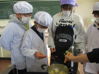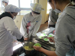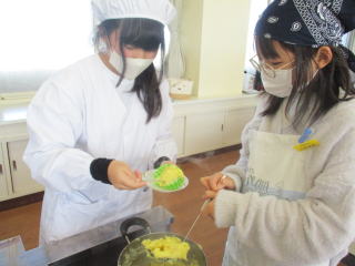 | 手際よく班で協力しておいしいきんとんが出来上がりました。 以外に簡単にできるんですよ。また、お家でもお正月のおせち料理の一つとして家族のために作ってみたいと思いましたという声も聞かれました。 |